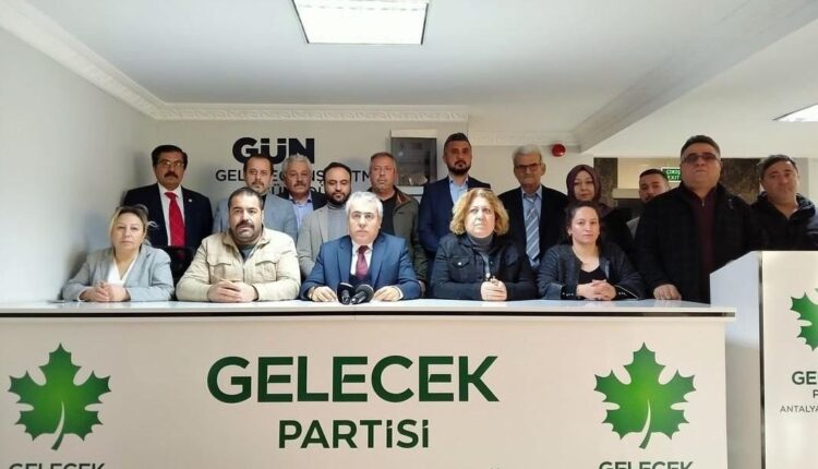 Gelecek Partisi’nin ülkenin sorunlarını anlama, analiz etme, çözüm üretme iradesini gösterebileceğine olan inancımız kalmamıştır. Bu sebeple Kadın Kolları Başkanımız Havva Gencer ve yönetimi, Aksu, Akseki, Elmalı, Kemer, Konyaaltı, Muratpaşa, Serik İlçe Başkanları ve yönetimleri, Antalya İl Yönetim Kurulu ve ben il başkanlığından ve parti üyeliğinden istifa ediyoruz” şeklinde konuştu.