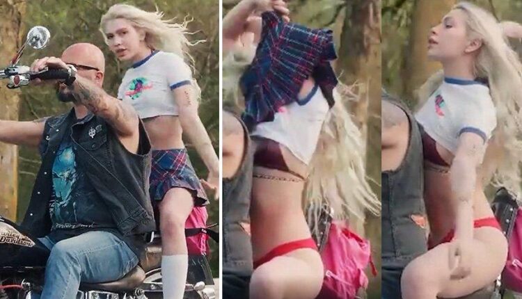 Klibin en ilginç sahneleri ise motor üzerinde gerçekleşti. Aleyna Tilki motosikletin arkasına oturdu ve araç hareket halindeyken altındaki ekose eteği çıkararak iç çamaşırıyla kaldı.