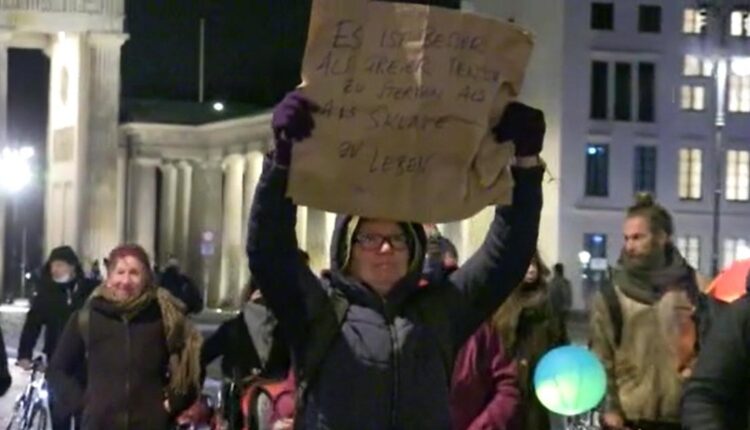 Berlin’de aşı karşıtları sokağa indi. Tarihi Brandenburg Kapısı önünde toplanan yaklaşık 300 eylemci, herkese aşı zorunluluğunun kanunlaştırılmasına karşı çıktı.