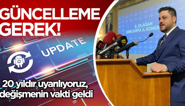 BTP Genel Başkanı Hüseyin Baş; Telefonlarınızdaki uygulamalar en genç ayda bir güncelleme uyarısı verir. Yahu 20 seneden beri size güncelleme uyarısı yapılıyor, siz hepsinde ‘daha sonra anımsat’ diyorsunuz. İstiyorsunuz ki illa telefonun şarjı bitsin. Değişmenin vakti geldi.
