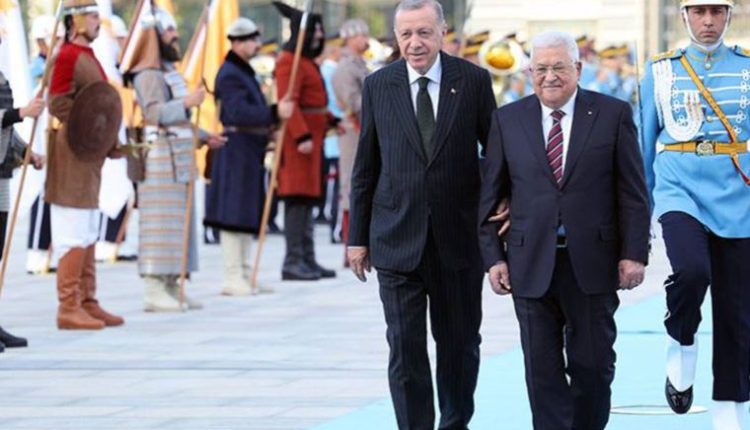 Erdoğan ve Mahmud Abbas’ın tören alanındaki yerlerini almalarının ardından, 21 pare top atışı eşliğinde iki ülke milli marşları çalındı. Filistin Devlet Başkanı Abbas, Muhafız Alayı Tören Kıtası’nı, “Merhaba asker” diyerek Türkçe selamladı.