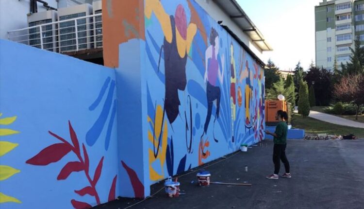 Duvarları renklendirip, atık malzemeleri sanat eserine dönüştürüyor