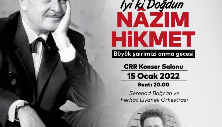 İBB Kültür Daire Başkanlığı’nın Nâzım Hikmet Sanat Vakfı işbirliği ile düzenlediği 15 Ocak 2022 Cumartesi akşamı Cemal Reşit Rey (CRR)Konser Salonu’nda gerçekleştirilecek “İyi ki Doğdun Nâzım Hikmet” etkinliğinde; yapımcılığını Nâzım Hikmet Sanat Vakfı ve Bir Yudum İnsan Film’in, yönetmenliğini Nebil Özgentürk’ün üstlendiği “Nâzım 120 Yaşında” belgeselinin ilk gösterimi yapılacak.