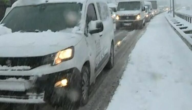 Küçükçekmece’de etkili olan kar yağışı nedeniyle E-5’te trafik durma noktasına geldi.