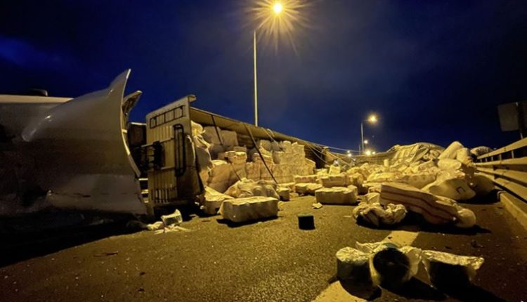 Kuzey Marmara Otoyolu’nda TIR devrildi