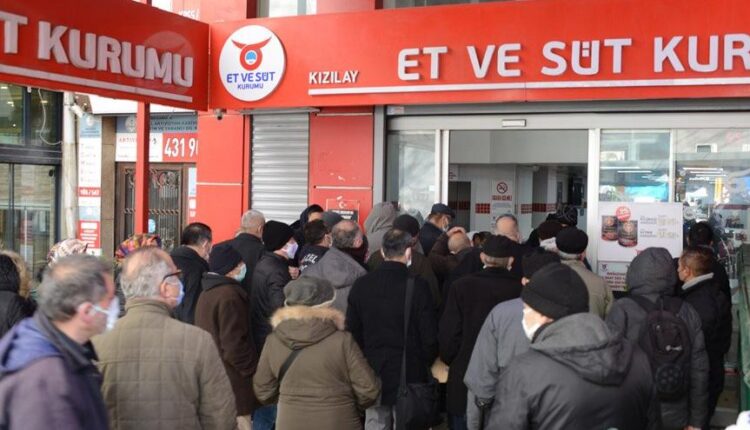 Ankara Kızılay’daki Et ve Süt Kurumu (ESK) mağazasında da her gün ‘Et savaşı’ yaşanıyor. Vatandaş indirimli et almak için sabahın erken saatlerinden itibaren kuyruğa giriyor. Kuyruğun giderek uzaması üzerine ESK mağazasına elle yazılan ilkel ‘Rulo numaratör’ konuldu.