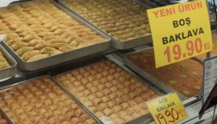 Ekonomist ve akademisyen Prof. Dr. Özgür Demirtaş, Twitter hesabında, bir tatlıcı vitrininde yer alan “yeni ürün – boş baklava” yazılı bir baklava çeşidinin görüntüsünü paylaştı.
