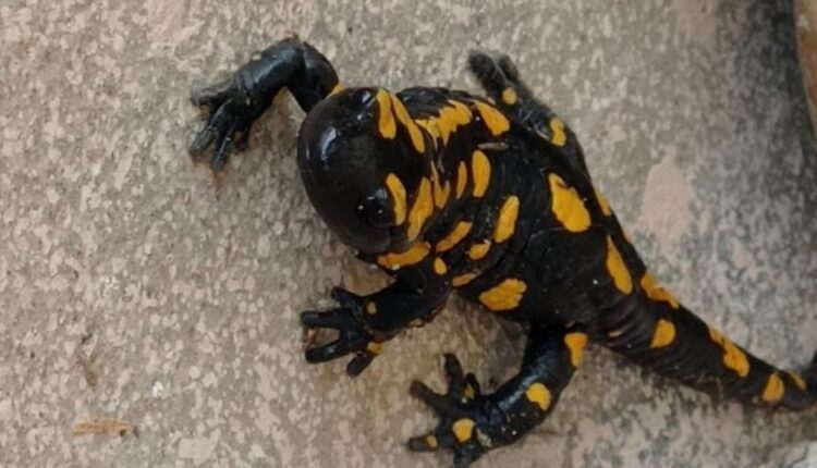 Yeşilyurt ilçesi Şahnahan Mahallesi’nde yaşayan Hasan Adak isimli vatandaş yağmur sonrasında Alikanlar Sokak içerisinde bulunan evlerinin bahçesinde sarı benekli Anadolu semenderi gördü.