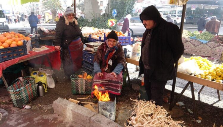 Pazarcılar buz tutan havada tezgahlarını kurarak müşteri bekledi. Soğuk havadan korunmak içinse teneke içinde ateş yakarak ısınmaya çalıştı. Bazısı getirdiği odun ve kömürü yakarken bazısıysa meyve sebze kasalarını parçalara ayırarak ateşe verdi.