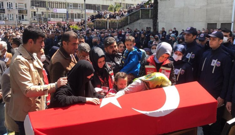 Yiğit’in yakınları al bayrağa sarılı tabutu gördüklerinde gözyaşlarını tutamadılar. Şehidin eşi ve çocukları son kez al bayrağa sarılı tabuta sarıldı.