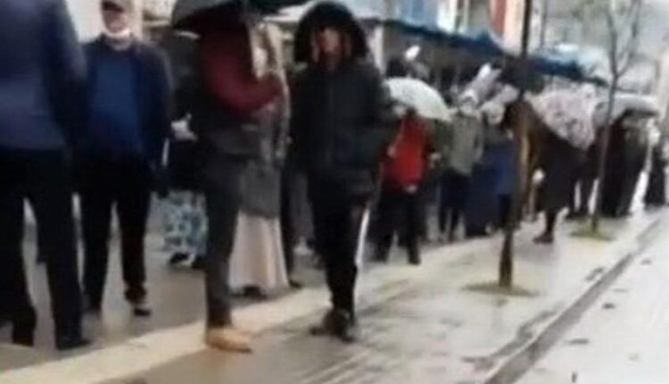 Tüp kuyruğu diyenler, Bursalılar’ın soğuğa ve yağmura rağmen ucuz ekmek kuyruğunda beklediği resme baksınlar!