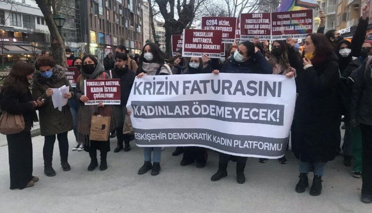 Eskişehir Köprübaşı Adalar’da toplanan Eskişehir Kadın Platformu, ‘Krizin faturasını kadınlar ödeyemeyecek’ eylemi yaptı. Eyleme katılan kadınlar, ‘Krizin faturasını kadınlar ödemeyecek’ yazılı pankart ile ‘Yoksulluk mutfakta, kadınlar sokakta’, ‘Yoksulluk artıyor, kadın isyanı çoğalıyor’, ‘Savaş yoksulluktur, kadınlar savaş istemiyor’ yazılı dövizler açarak, ‘Geçinemiyoruz’, ‘Zamlar geri alınsın’, ‘Krizi biz yaratmadık, faturasını da ödemeyeceğiz’, ‘Sefalete teslim olmayacağız’, ‘AKP elini cebimizden çek’, ‘Krize karşı isyandayız’, ‘Bu zamlarla yaşanmaz, zamlar geri alınsın’ şeklinde sloganlar attı.